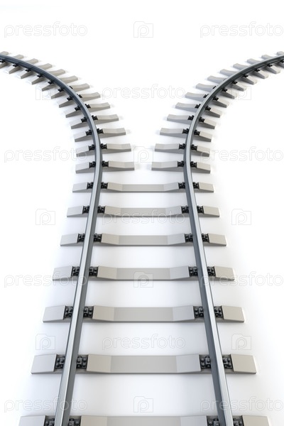Железная дорога с расходящимися рельсами. 3D