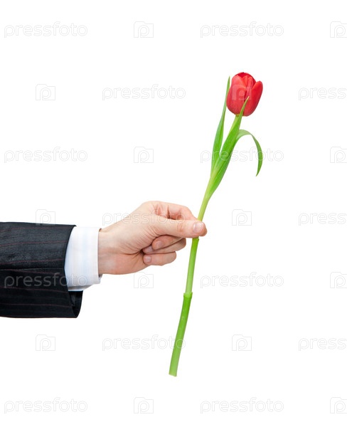 Красный тюльпан в мужской руке