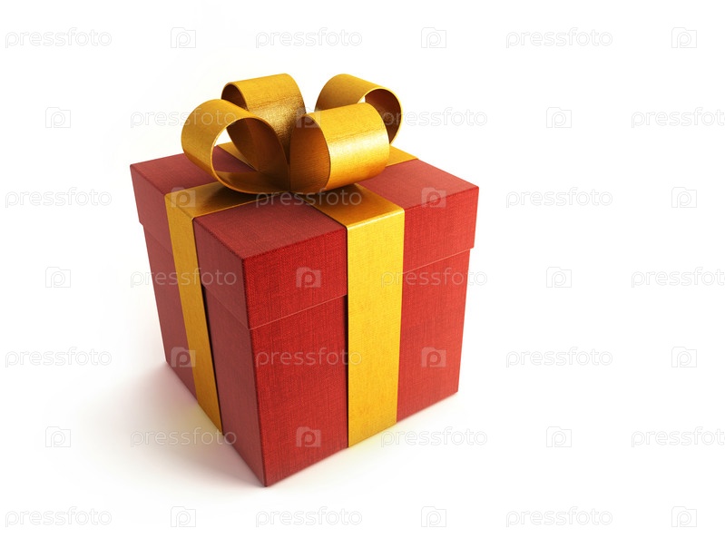 Подарок в красной коробке с желтой лентой