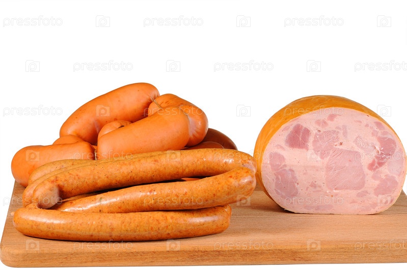 Колбасные изделия на деревянной доске