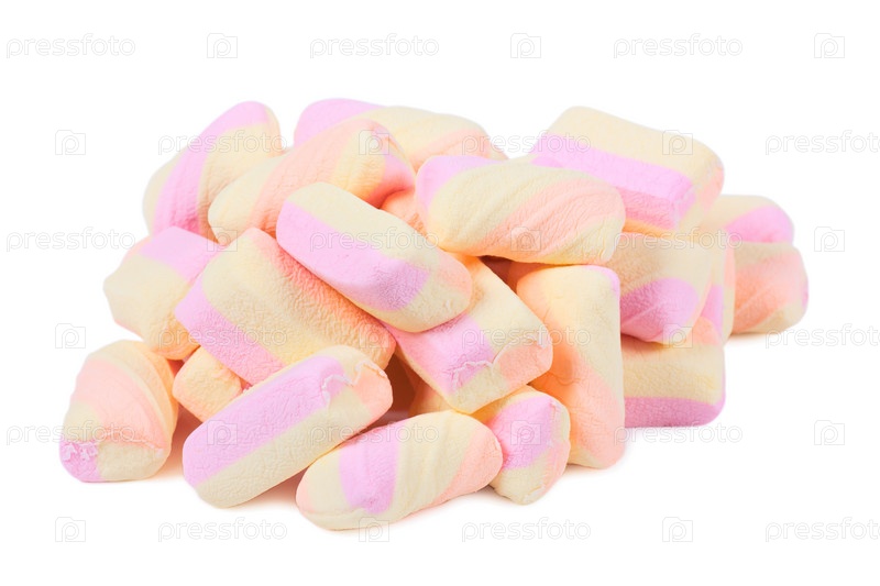 Куча цветного зефира на белом фоне