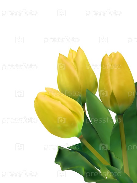 Желтые тюльпаны на белом фоне