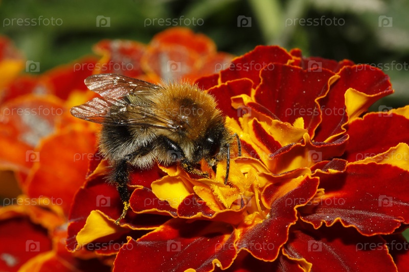 Шмель на красном цветке