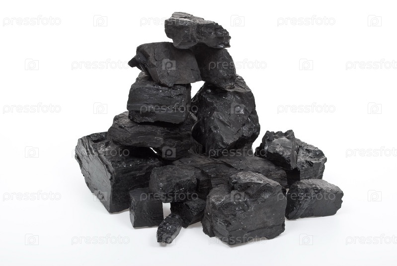 Куски угля на белом фоне