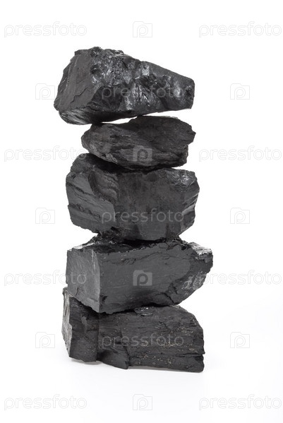 Куски угля на белом фоне