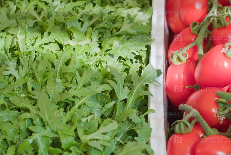 Салат руккола и помидоры