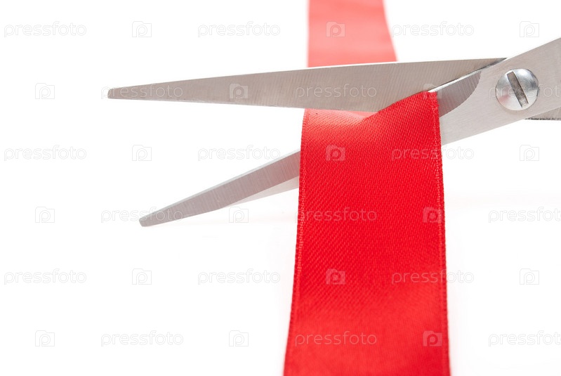 Ножницы перерезают красную ленту