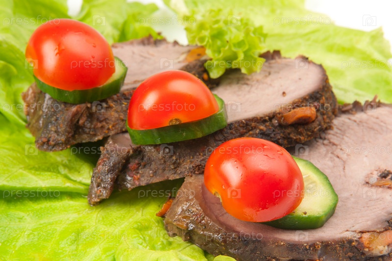 Три куска буженины с овощами