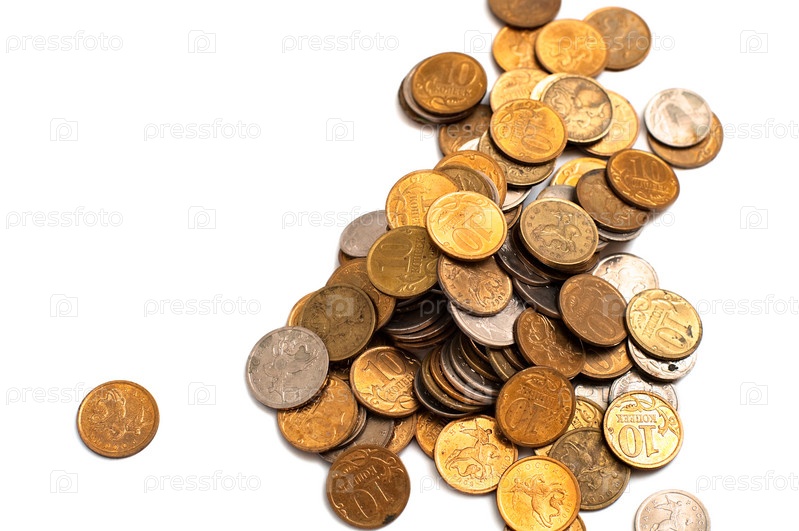 Мелкие монеты на белом фоне