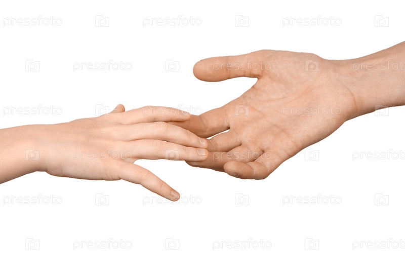 Рука человека держит руку ребенка на белом фоне