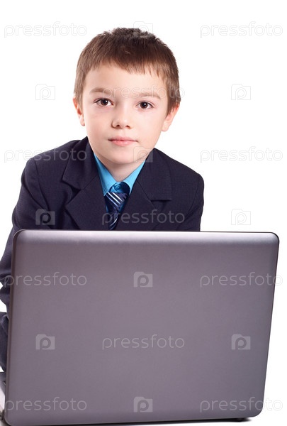 Мальчик в костюме с ноутбуком