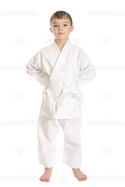 Юный мальчик стоит в кимоно