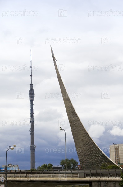 Стелла перед музеем космонавтики на фоне телевизионной башни в Москве