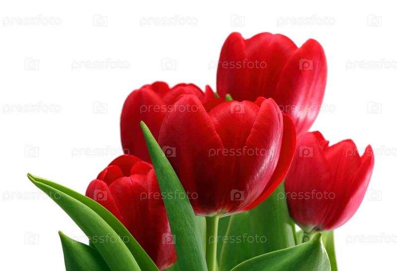 Красные тюльпаны на белом фоне