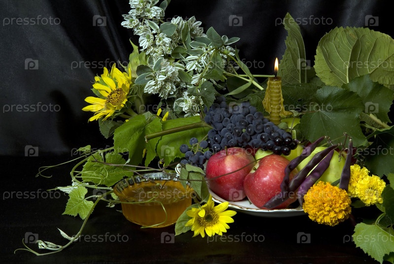 Натюрморт с цветами и фруктами