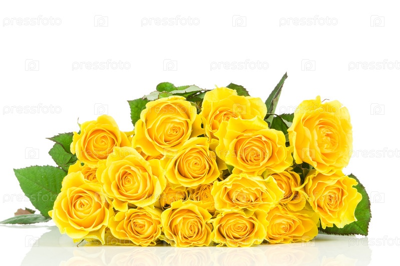 Желтые розы на белом фоне