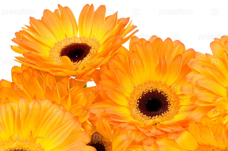 Оранжевые герберы на белом фоне
