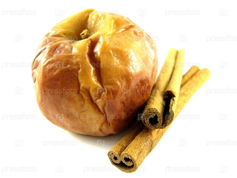 Запеченное яблоко с корицей на белом фоне