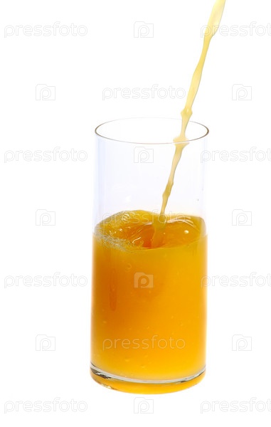 Стакан с апельсиновым соком на белом фоне