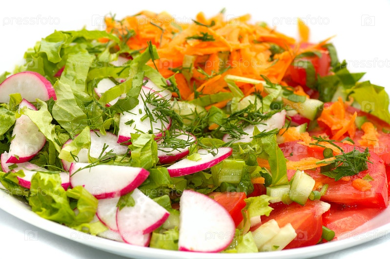 Овощной салат на белом фоне