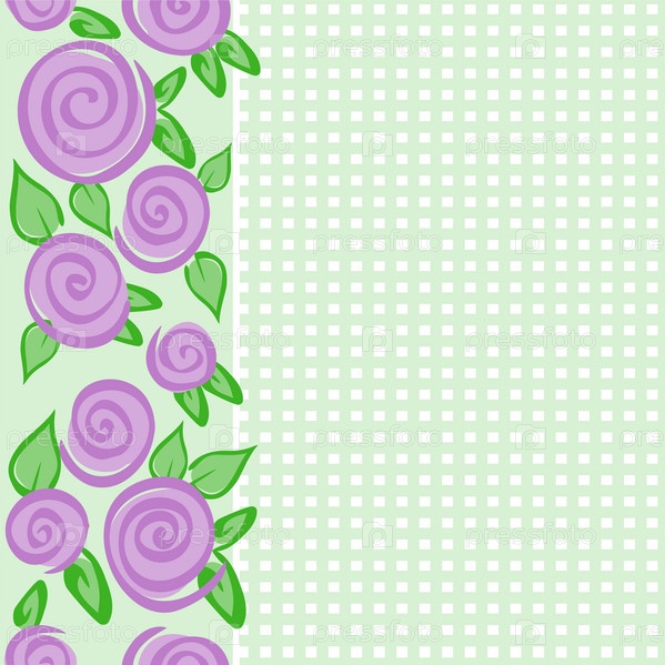 Вертикальный зеленый бесшовный орнамент с розами и клеточками
