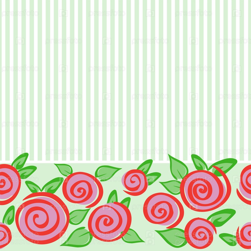 Горизонтальный зеленый бесшовный орнамент с розами и полосками