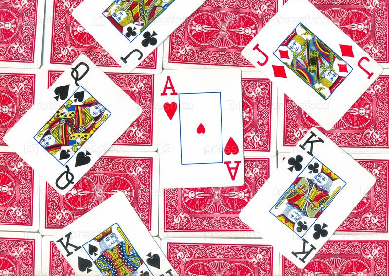 Фон инверса игровых карт разных цветов на столе, изолированном от белого