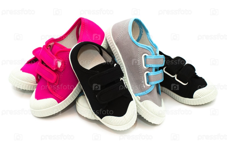 Цветная детская обувь на белом фоне