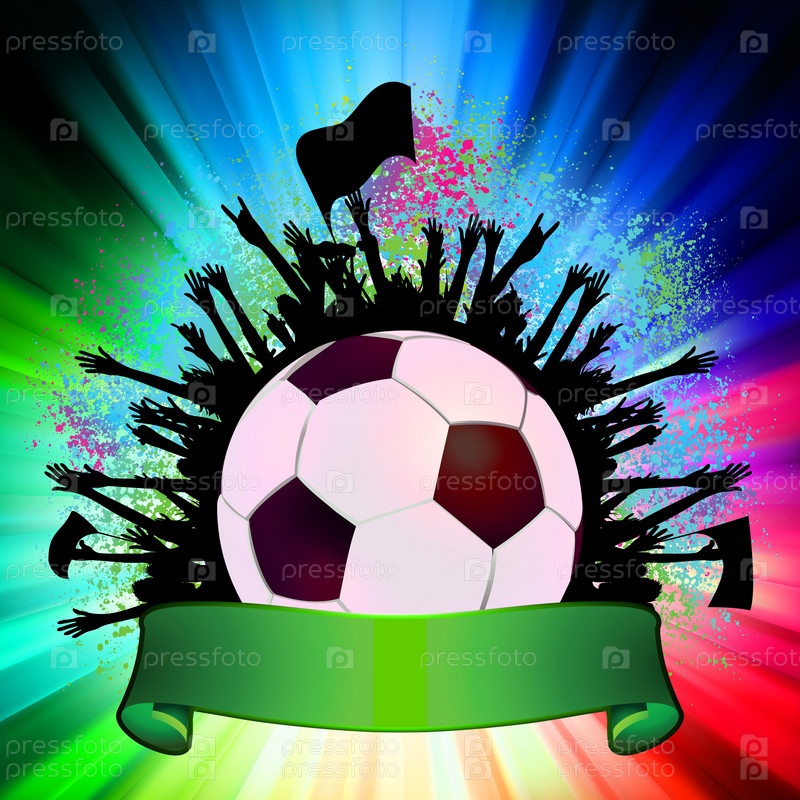 Футбольный мяч с силуэтами болельщиков на ярком фоне