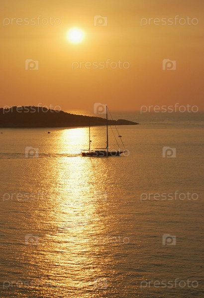Закат над Адриатическим морем, город Цавтат, Хорватия