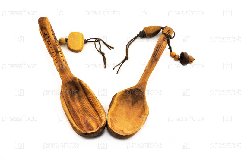 Пара старых деревянных ложек для приготовления пищи, изолированные на белом фоне