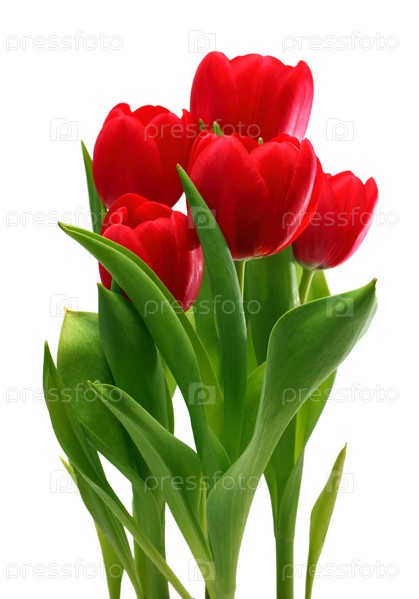 Букет из красных тюльпанов на белом фоне