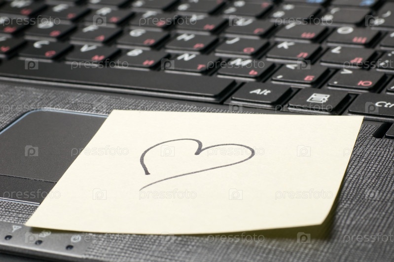 Лист с изображением сердечка на клавиатуре ноутбука