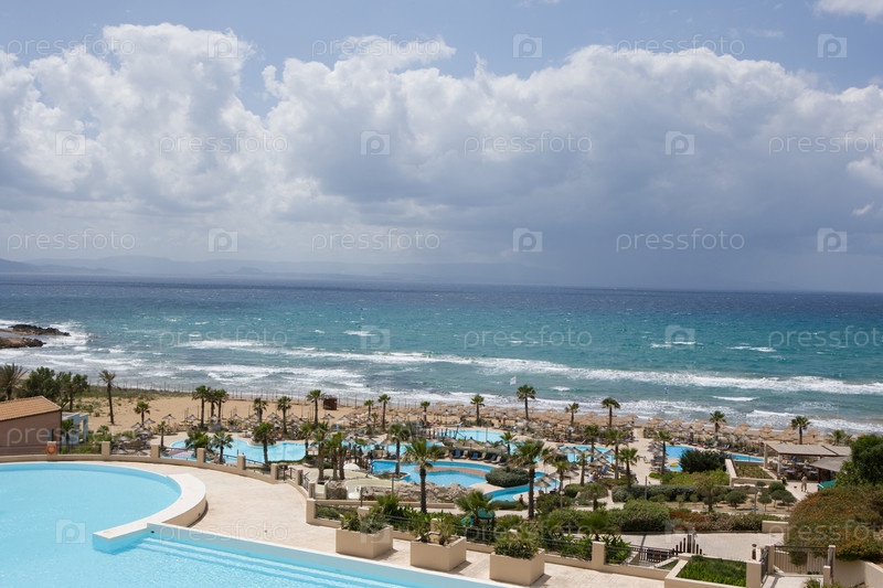 Вид на море и бассейн в греческом отеле