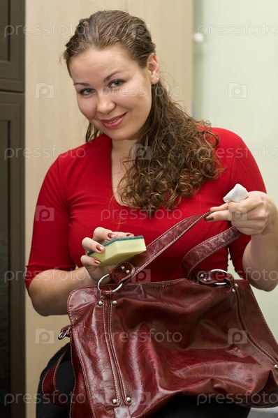 Красивая молодая женщина с чистящими средствами в домашней комнате
