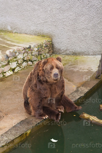 Бурый медведь сидит возле воды