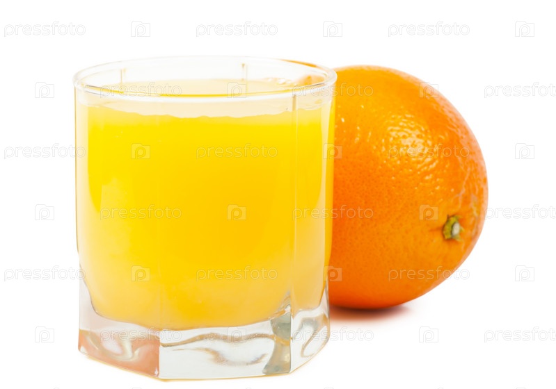 Стакан апельсинового сока на белом фоне