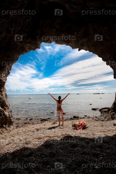 Девушка в купальнике на фоне моря
