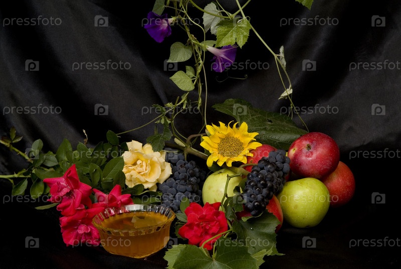 Натюрморт с фруктами и цветами