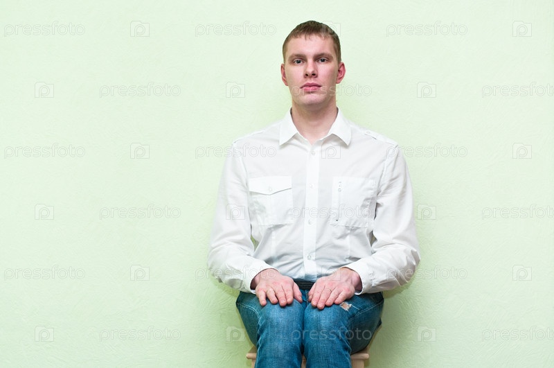 Молодой человек, сидящий у стены