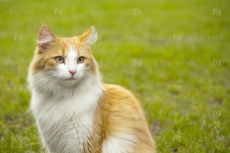 Рыжий кот на зеленом лугу