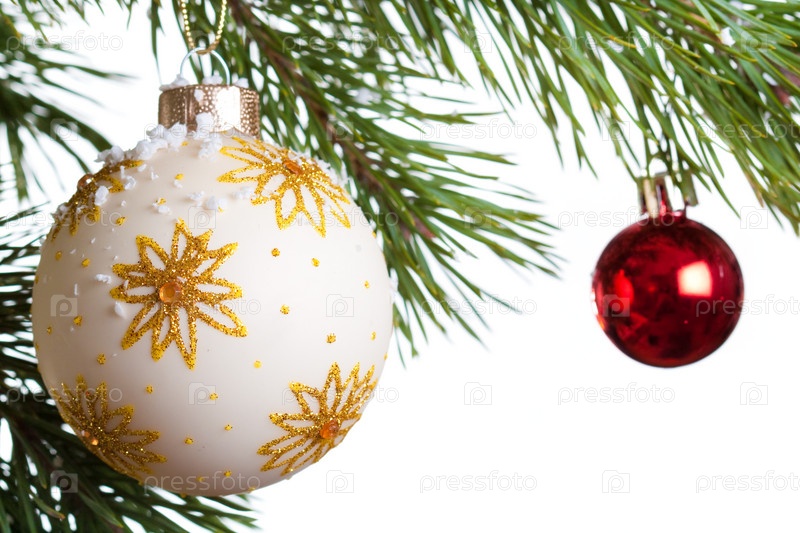 Ветка новогодней елки, изолирована на белом