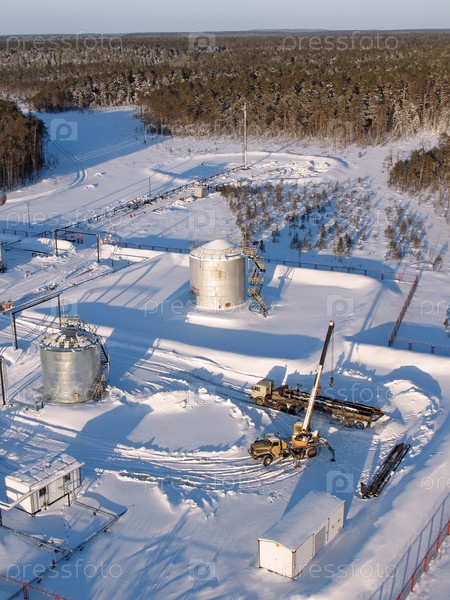 Нефтяная промышленность. Монтаж трубопровода в дикой сибирской тайге