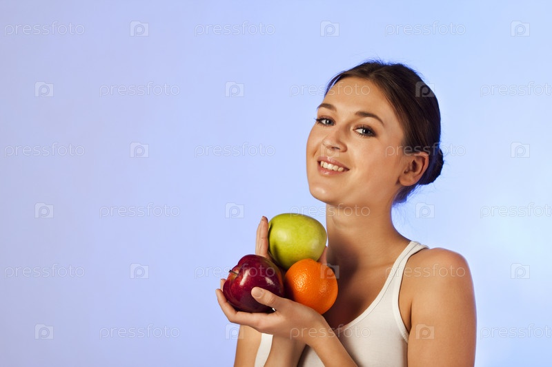 Милая девушка с фруктами в руках