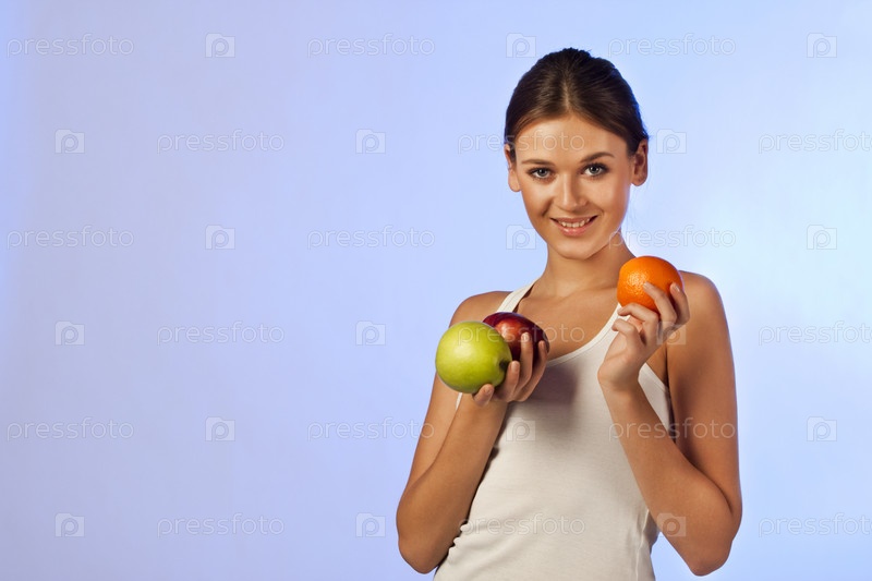 Милая девушка с фруктами в руках