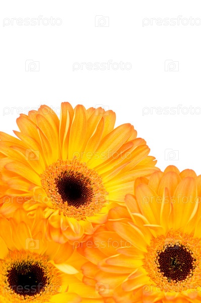Желтые герберы на белом фоне