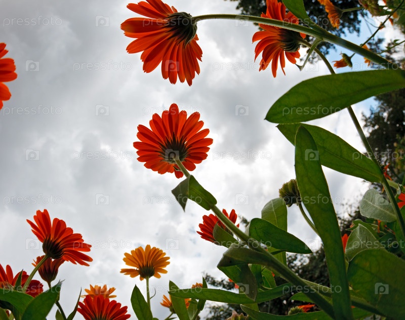Цвета календулы на фоне облачного неба