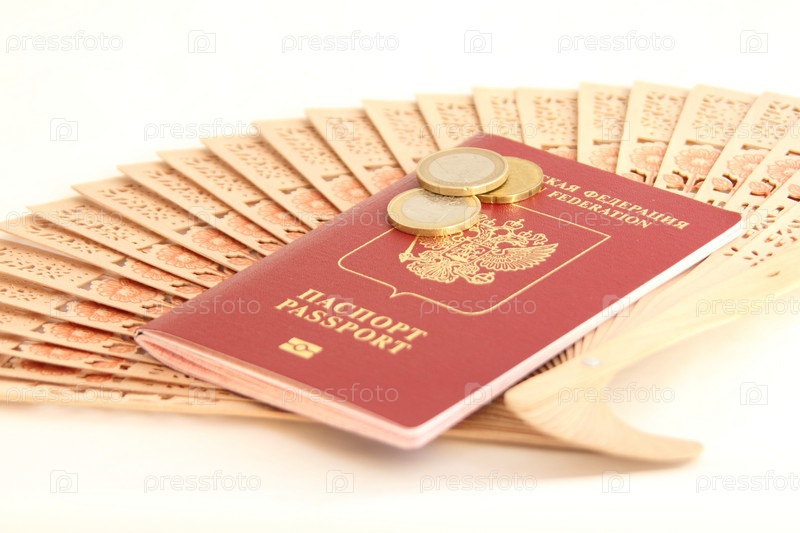 Заграничный паспорт, монеты и веер