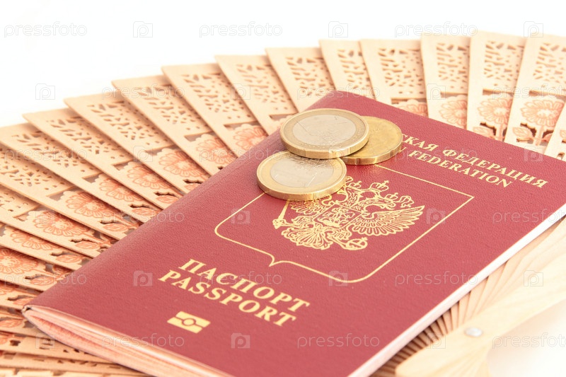Заграничный паспорт, монеты и веер