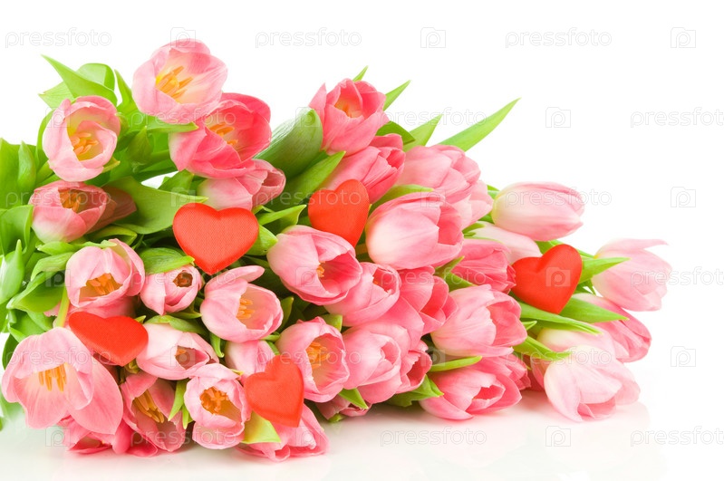 Букет тюльпанов и красные сердечки